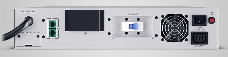Modul baterie je dodáván s napájecími konektory typu plug-and-play DC, které umožňují přidání několika EBM. vestavěný nabíjecí modul umožňuje nabíjení EBM přímo ze zásuvky a bez nabíjení z UPS, což významně šetří celkový čas nabíjení při současném nabíjení více EBM.