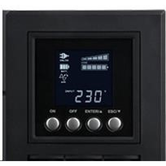 | Multi-funkcní LCD zobrazení | Typ provozu , Stav napájení , Stav baterie , Stav zátěže , Porucha a varování , Další informace , Události a záznamy |