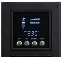 | Multi-funkcní LCD zobrazení | Typ provozu , Stav napájení , Stav baterie , Stav zátěže , Porucha a varování , Další informace , Události a záznamy |