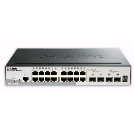 D-Link DGS-1510-20 20-Port Gigabit Stackable SmartPro Switch, 16x gigabit RJ45, 2x 10G SFP+ port, 2x SFP port