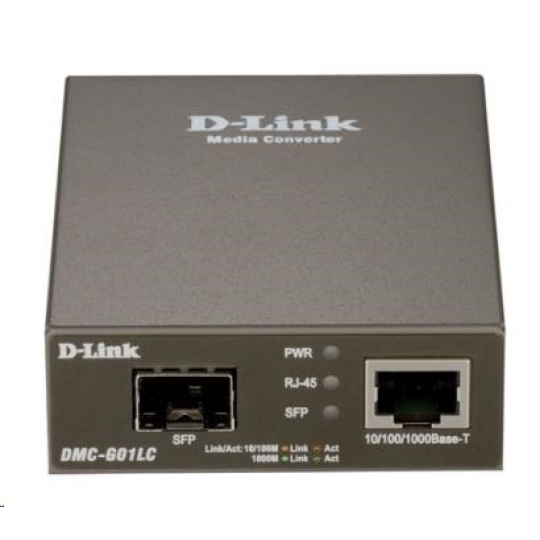 DMC-G01LC/E D-Link DMC-G01LC 10/100/1000 to SFP Media Converter D-Link DMC-G01LC je media konvertor pro převod metalického Ethernet rozhraní na optická vlákna, což umožňuje rychlé spojení na velké vzdálenosti. Metalické rozhraní 10/100/1000Base-T RJ-45 automaticky vyjednává rychlosti 10Mb/s, 100Mb/s nebo 1000Mb/s dle typu připojeného zařízení, podporuje automatické přepínání MDI/MIDX, half/ful duplex provoz při 10/100 Mb/s rychlostech a full duplex provoz při 1000Mb/s. Optická strana konvertoru DMC-G01LC využívá 100/1000 SFP port pro maximální flexibilitu. Pomocí příslušného SFP transceiveru (zakoupeného samostatně) může podporovat vícevidové (multi-mode) nebo jednovidové (single-mode) vlákno, různé vlnové délky a rychlosti buď 100 Mb/s nebo 1000 Mb/s. DMC-G01LC podporuje standardní technologie, jako např. 802.3u. 802.3x a 802.3ab. Jedná se o zařízení typu plug&play, bez nutnosti nastavování. Instalace je velmi snadná – položte konvertor na poličku, připojte externí napájecí 5V DC adaptér (součástí dodávky), vložte SFP transceiver, připojte kabely a můžete začít konverzi. Specifikace: • Stand-alone Gigabit Media Converter • 10/100/100M RJ-45 port • 100/1000M SFP port • IEEE 802.3u • IEEE 802.3x • IEEE 802.3ab • Auto-Negotiation for each port • Full-Duplex operation at 1000 Mbps • Half/Full-Duplex operation at 10/100 Mbps • Back pressure at Half-Duplex operation • Auto MDI/MDIX • Wire speed reception and transmission • Supports Jumbo frames up to 9216 bytes at 1000 Mbps • LFPT - Link fault pass-through technology • Maximum Forwarding Rate: 14880 pps @ 10 Mbps, 148800 pps @ 100 Mbps, 1488000 pps @ 1000 Mbps • Forwarding mode Cut-Through • Packet Buffer Memory 256 Kbits • Switching Capacity 2 Gbps • External Power Adapter 5V/1A included • Power Consumption (Max.) at 240 V AC: 0,918 W • Power Consumption (Standby) at 240 V AC: 2,391 W • Heat Dissipation: 11,81 BTU/h (Max) • Dimensions (L x W x H): 75x 60 x 23 mm) • MTBF: 1,723,322 hours • Operation Temperature: 0°C to 50 °C • Storage Temperature: -20°C to 70 °C • Operating Humidity: 0% to 90% • Storage Humidity: 5% to 90% • EMI certifications: CE class A, FCC class A, VCCI class A, BSMI class A • Safety certifications: LVD, UL/cUL, CB Volitelné SFP transceivery* • DEM-211 - 100BASE-FX Multimode Fiber SFP Transceiver, 1310nm • DEM-310GT - 1000BASE-LX Singlemode Fiber SFP Transceiver, 1310nm • DEM-311GT - 1000BASE-SX Multimode Fiber SFP Transceiver, 850nm • DGS-712 - 1000BASE-T Copper SFP Transceiver *Tyto transceivery D-Link byly testovány s tímto konvertorem DMC-G01LC pro interoperabilitu. Kompatibilita s jinými transceivery jiných výrobců nebyla testována a není zaručena. Použití transceiverů třetích stran je na vlastní nebezpečí..