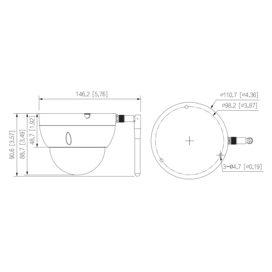 - Napájení: DC 12 V, příkon do 4,9 W (IR přísvit + H.265), napájecí adaptér je součástí balení