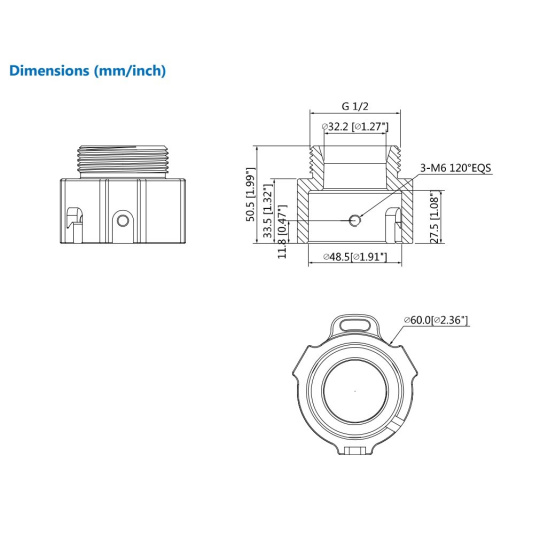 | Dimension | ?60mmx50.5mm (?2.36”x1.99”) |