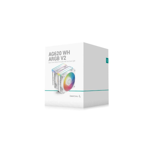 DeepCool AG620 WH ARGB V2 je zcela bílý dvouvěžový chladič procesoru zaměřený na vysokou výkonnostní účinnost, který se pyšní šesti tepelnými trubicemi zabudovanými v husté věži chladiče pro optimální odvod tepla a je vybaven dvěma vyladěnými 120mm ventilátory ARGB PWM pro výkonné chlazení.