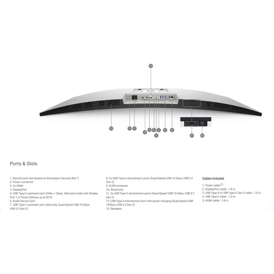 Rozlišení displeje:5120x1440; Úhlopříčka displeje ("):49; Výbava:VESA montáž, Pivot, Nastavitelná výška, Dokování NTB; HDMI počet:2; DP počet:1; DP verze:1.4; Doba odezvy (ms):8; Formát obrazovky:32:9; Typ panelu:IPS; Jas (cd/m2):350; Kontrast:1:2000; Obnovovací frekvence displeje (Hz):60; VESA rozměry:100x100; Standardní záruka (roky):3.