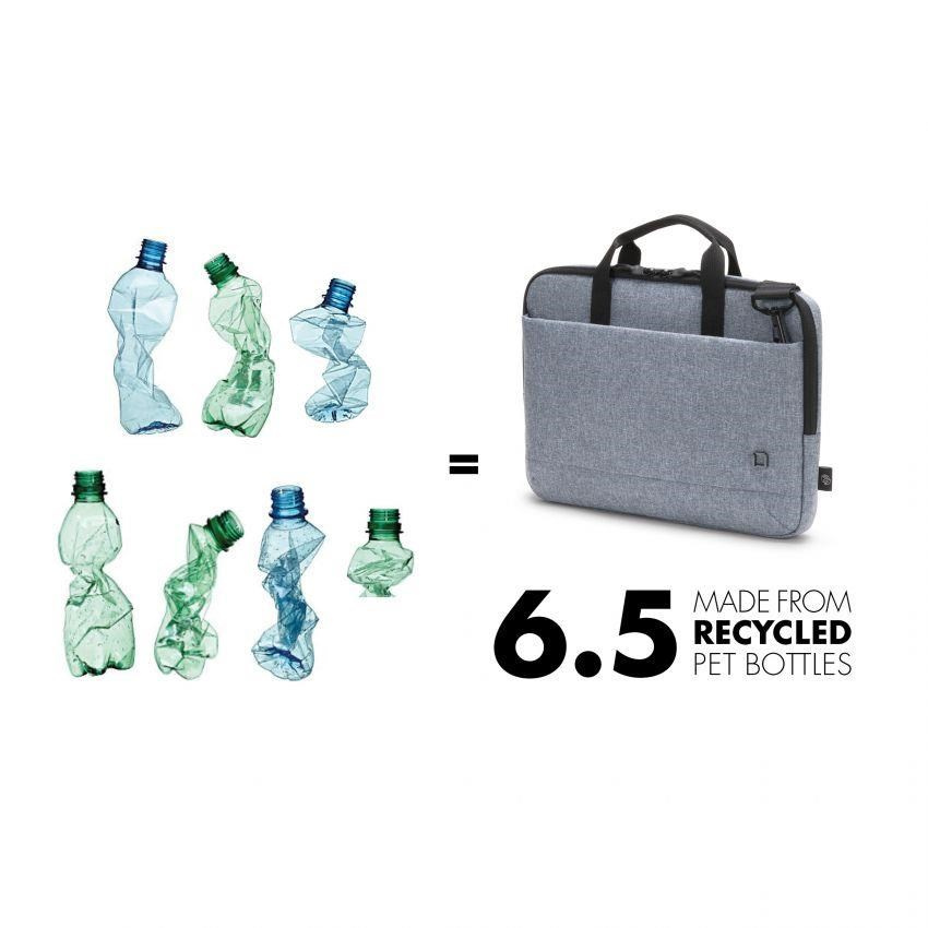Laptop Case Slim Eco MOTION 14 - 15.6" Blue Denim Light notebook case with protective padding Today's actions shape tomorrow's world. Which is why, here at DICOTA, we are dedicated to developing environmentally friendly solutions and therefore make all the items in our ECO collections out of sustainable, recycled PET. We reuse up to 31 PET bottles, so you will receive an environmentally friendly product with a life-long guarantee. Our PET products also have the quality, look and finish that you know and love. Specifications Art.no.: D31872-RPET EAN: 7640186418171 Weight: 0.6 kg Material: 600Dx400D RPET Polyester Warranty: Lifetime / 30 years Dimension: 405 x 45 x 290 mm Max. Device dimensions: 385 x 30 x 265 mm Characteristics • Made of 6.5 recycled PET bottles • Padded notebook compartment with high density foam (HDF) • Slip pocket for tablets up to 12.9" • Front pocket with storage space for mobile accessories • Document compartment on the back • Comfortable padded handle • Removable, adjustable shoulder strap • Water-repellent material.