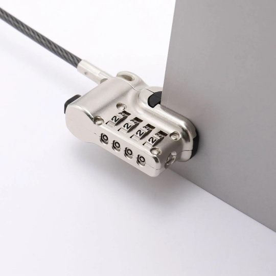 Zámek lze přesně a snadno připevnit ke stojanu zařízení Microsoft Surface Pro a Surface Go. Bez klíče a bez kompromisů v zabezpečení: snadno si nastavte individuální čtyřmístný číselný kód z 10 000 možných kombinací. Díky funkci „push-to-lock“ lze zámek také zabezpečit. Opláštěné vícežilové ocelové lanko je dlouhé 2 m a má průměr 4,4 mm. Funkční pásek na suchý zip umožňuje srolovat kabel pro kompaktní skladování a přepravu.