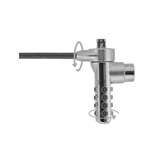 Tento zámek DICOTA se hodí do všech standardních slotů T-Lock (T-Bar*): lze účinně zabezpečit notebooky, projektory, tiskárny a monitory. Ocelové lanko o délce 200 cm a průměru 4,8 mm je navrženo tak, aby bylo mimořádně dlouhé a mimořádně pevné. Notebooky, projektory, tiskárny a monitory lze účinně zajistit. Čtyřmístná kombinace umožňuje nastavit individuální číselný kód z 10 000 možných číselných kombinací zajišťuje potřebné zabezpečení. Tento zámek se používá v systému nadřazeného zámku, který umožňuje přístup jednotlivým uživatelům i správci systému prostřednictvím hlavního klíče. Každý systém je individuálně navržen a vyroben speciálně pro vás. Podrobnosti s vámi rád probere váš partner DICOTA. *T-Bar™ je ochranná známka třetí strany bez vazby na společnost DICOTA SCHWEIZ AG.