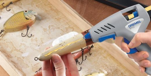 Dremel 910 je vysokoteplotní (165 °C) lepicí pistole s hrotem pro přesné lepení a ochranou proti kapání. Díky malé velikosti a dobré ergonomice (držadlo ve tvaru T, stabilní základna, rozkládací stojánek) se jedná o ideální nářadí pro rychlé, nenáročné kutilské práce kolem domu, jako je lepení keramiky, dřeva, plastů, skla atd.