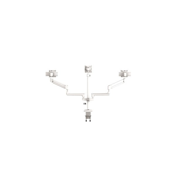 držák pro 3 monitory usnadňuje organizaci pracovního prostoru, zvětšuje prostor na pracovním stole, zmenšuje únavu zraku a zmírňuje svalové napětí ramen a krku snadné nastavení ramene pomocí plynové pružiny a posunu na tyči, poloha monitoru se tím mění snadno a velmi přesně minimalistický, stylový design s vestavěným systémem uspořádání šňůr a kabelů technologie plynových pružin umožňuje snadné nastavení monitoru pro práci a sdílení obrazovky rameno se může otočit o 270° s aretací v poloze 180° max. úhel naklápění nahoru / dolů: + / - 60 ° max. úhel naklápění vpravo / vlevo: + / - 90° max. výška 510 mm min. zatížení jednoho ramene je 9 kg montážní systém VESA, splňuje normy VESA 75 × 75 a 100 × 100 snadná montáž ke stolu pomocí svorky nebo šroubu s okem materiál kov doporučeno Mezinárodní akademií pro ergonomické produkty FIRA™.