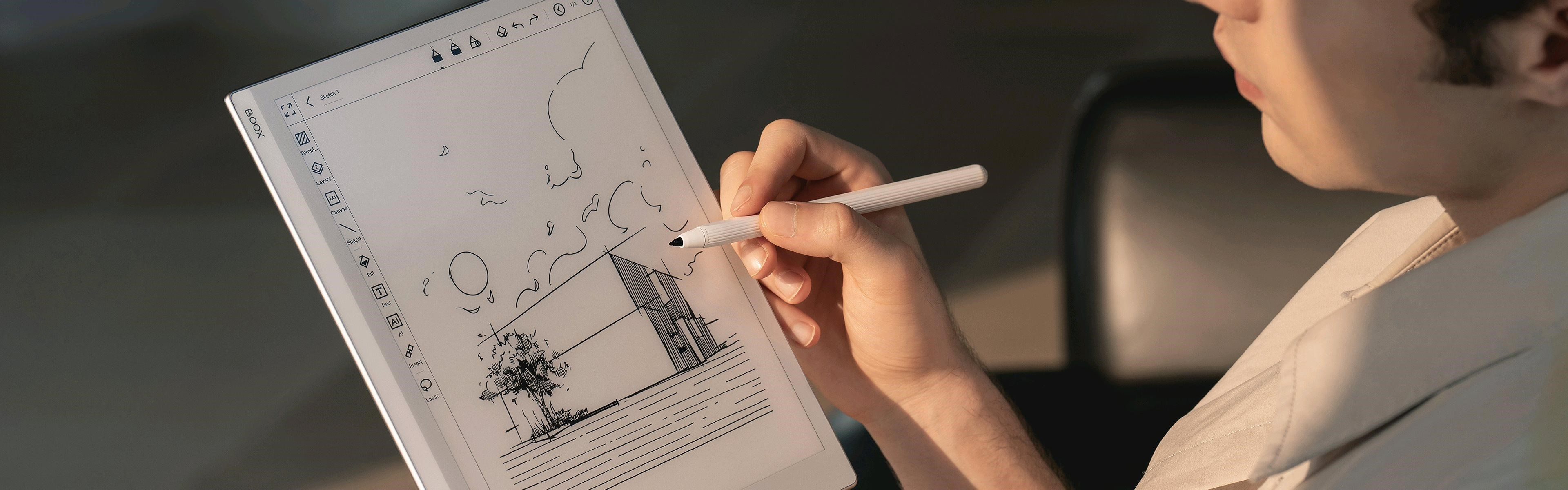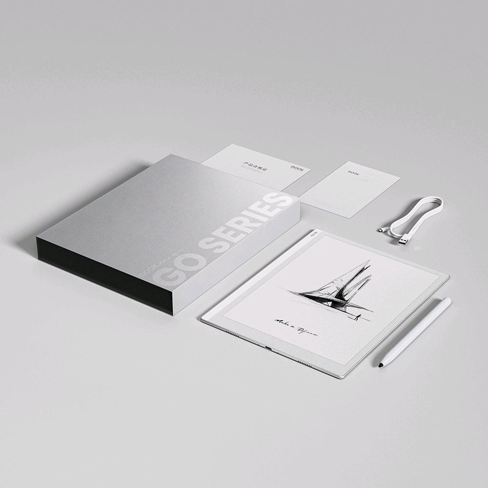 ONYX BOOX Go 10.3 je velkoformátová 10,3” E čtečka, která vám umožňuje pořizovat ručně psané poznámky perem dodávaným se zařízením. Model je vybaven obrazovkou E Ink Carta Plus (Carta 1200) s vysokým rozlišením a dvěma senzorovými vrstvami: kapacitní vrstvou pro dotyk prstů a indukční vrstvou pro práci s perem. Zařízení je založeno na vysoce výkonné hardwarové platformě a lehkém tenkém těle (4,5 mm). ONYX BOOX Go 10.3 běží na 8jádrovém procesoru a 4 GB RAM a 64 GB energeticky nezávislého úložiště bude stačit pro uložení velkého množství e-knih a dokumentů. Vestavěný dvoupásmový Wi-Fi modul umožňuje přístup k internetu a využívání síťových služeb a podpora Bluetooth 5.0 umožňuje připojení externích zařízení a příslušenství. S pomocí předinstalovaného audio přehrávače můžete poslouchat hudbu a audioknihy. Podporována je také funkce Text-To-Speech. Model běží na operačním systému Android 12 a umožňuje instalovat a používat aplikace třetích stran. Zařízení má obchod s aplikacemi Google Play pro stahování a instalaci různých aplikací třetích stran. Displej je pokryt speciálním sklem ONYX Glass, které ho chrání před poškozením. Díky velkému displeji a možnosti dělat si ručně psané poznámky bude model výbornou volbou pro ty, kteří plánují pracovat s dokumenty a hodně psát. ONYX BOOX Go 10.3 nemá systém předních světel a byl navržen pro práci ve vnějším osvětlení.