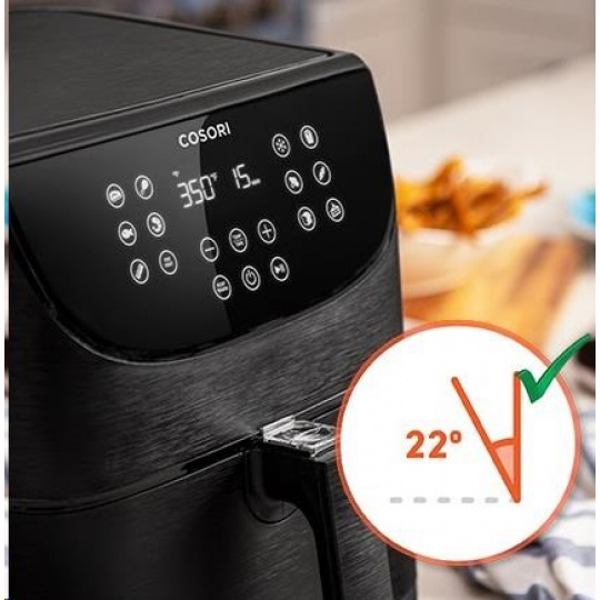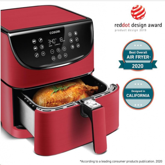 Design horkovzdušné fritézy COSORI CP158-AF byl navržen v Kalifornii. Díky své praktičnosti, funkcím, ovládání i přehlednému dotykovému nakloněnému LED displeji se snadno přístupnými tlačítky získal také prestižní ocenění Red Dot Award a Design Award za nejlepší design. Povrchová úprava je navíc odolná vůči otiskům prstů, takže fritéza bude ve vaší kuchyni vypadat pořád skvěle. Podle prodejních statistik je značka COSORI také nejprodávanější značkou horkovzdušných fritéz v USA.