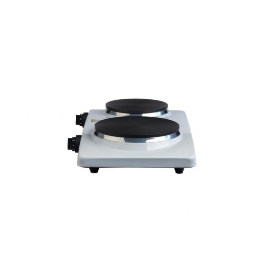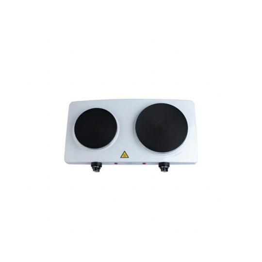 "Elektrický vařič se dvěma plotýnkami 185mm a 155mm topné desky. Plynulá regulace ohřevu. Světelná signalizace ohřevu. Ochrana proti přehřátí Napájení: 220 - 240V~ 50/60Hz, 2 500 W".