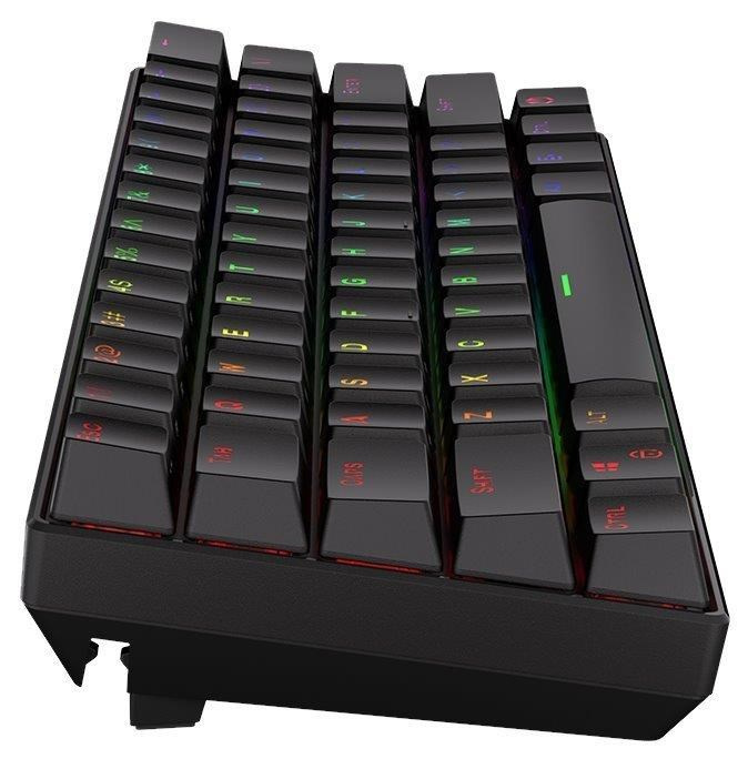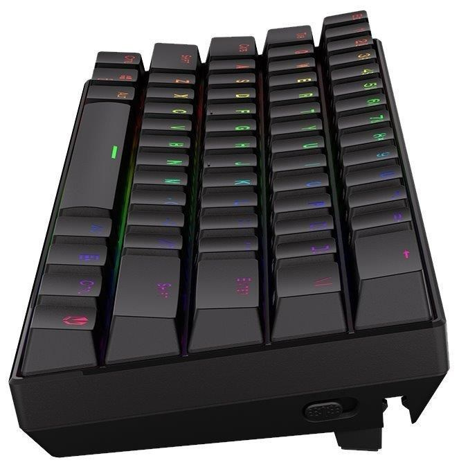 Bezdrátová mechanická herní klávesnice v kompaktním provedení je vybavena spínači Kailh Brown s perfektní odezvou a životností až 70 milionů stisků. Klávesy jsou RGB podsvícené a nabízí možnost vlastního nastavení. Klávesy jsou navíc také plně programovatelné, díky tomu lze klávesnici individualizovat přesně podle potřeb hráče a hrané hry. Samozřejmě nechybí ani funkce Anti-Ghosting a N-Key rollover. Připojení k počítači lze realizovat jak bezdrátově skrze Bluetooth či miniaturní USB přijímač a technologii 2,4 GHz, tak i drátově pomocí USB kabelu, který slouží zároveň pro nabíjení.