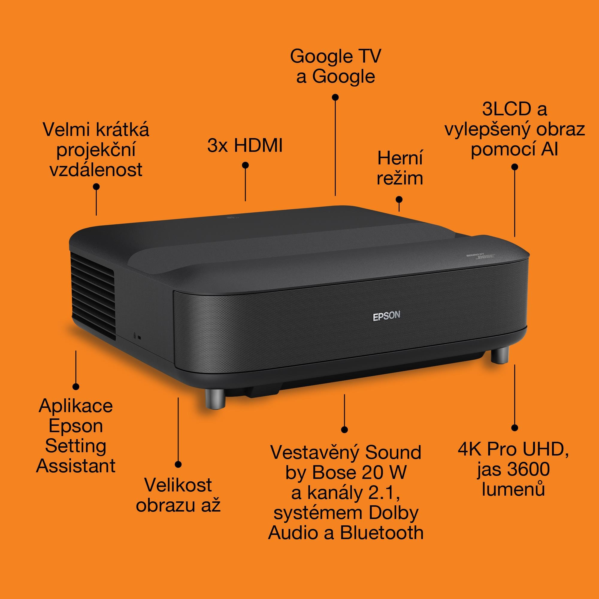 Epson Lifestudio Grand – EH-LS670B Metalická černá, 4K PRO-UHD, 3600lm, HDMI, USB, Google TV, 240Hz