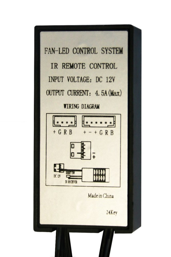 - dálkové ovládání (možnost volby barvy podsvětlení s možností vypnutí, řízení otáček ventilátorů s možností vypnutí)