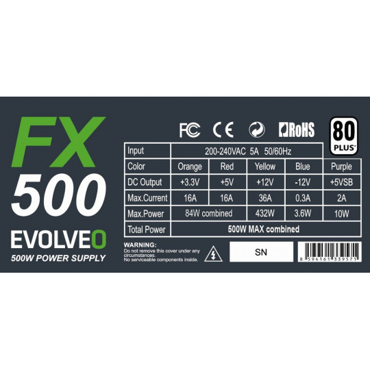 EVOLVEO FX 500 , zdroj 500W ATX, 14cm, tichý, 80+, bulk, záruka 3 roky