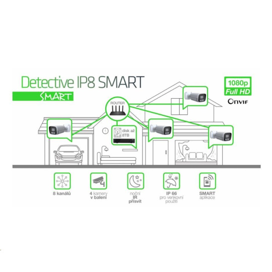 EVOLVEO kamerový systém Detective IP8 SMART, 4 kamery