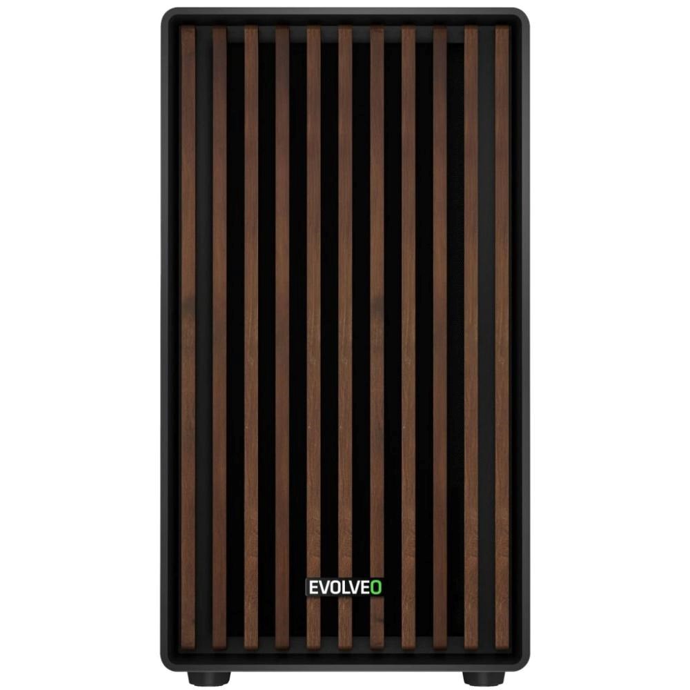 EVOLVEO Panthera, skříň mATX, 3x ARGB ventilátor 120mm, dřevěný přední panel + skleněná bočnice