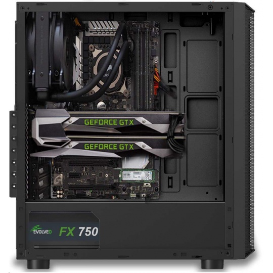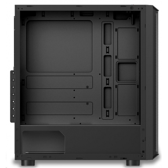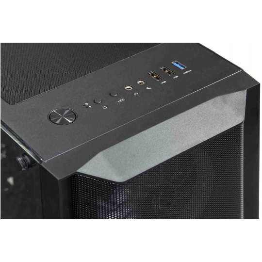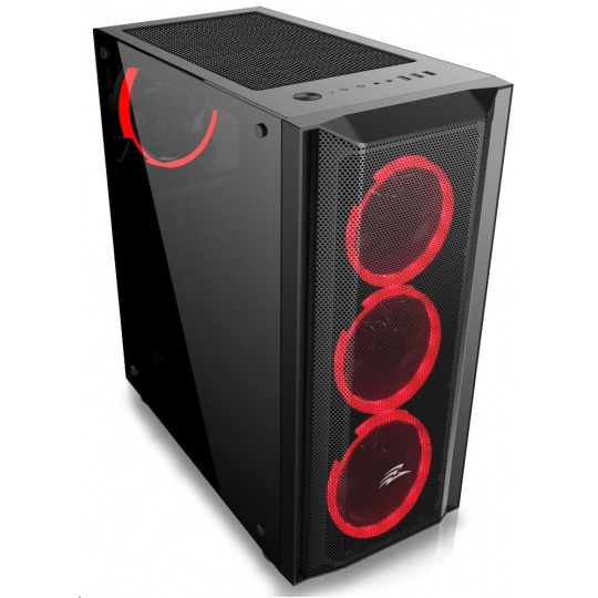 Herní ATX midi tower s instalovanými 4x RGB rainbow 120 mm ventilátory, které se ovládájí pomocí LED tlačítka na horní straně ovládacího panelu. Čelní mřížka přes celý přední kryt zajišťuje efektivní proudění vzduch. Levá strana skříně obsahuje bočnici z tvrzeného skla. Skříň je určená pro základní desky podporující platformu Intel i AMD. Mimo formátu ATX je kompatibilní i s formátem Micro ATXa Mini ITX. Napájecí zdroj se umísťuje do dolní části skříně. Spodní mřížka je osazena vysouvacím prachovým filtrem, horní prachový filter je uchycený magnety a je odnímatelný.