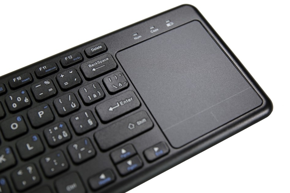 Všestranná 2.4GHz bezdrátová klávesnice s Touchpadem. Ideální pro ovládání Smart televizí, multimediálních center, HTPC počítačů, apod. Můžete také použít s notebookem nebo klasickým PC, pokud chcete dálkově ovládat svůj počítač.