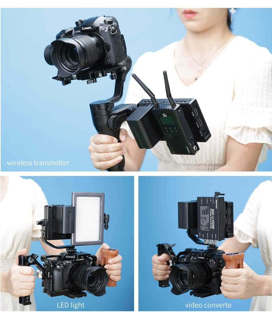 F5 Pro má standardní 1/4" montážní body (nahoře, dole, vpravo, uprostřed vzadu) pro připevnění k fotoaparátům a jiným zařízením. Nejen, že jej můžete nainstalovat na monitor pomocí naklápěcího ramene, ale také jej můžete připevnit na stabilizátor nebo jej bezpečně připevněte k horní části vašeho fotoaparátu jako ultimátní HD hledáček! Pokud jej nainstalujete na spodní část zařízení, můžete také kombinovat funkci převrácení obrazu pro zachování správné orientace obrazovky!