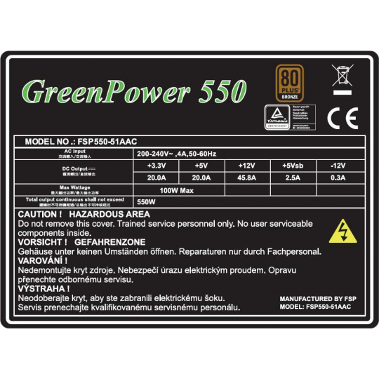 Fortron zdroj 550W GreenPower 550-51AAC,80+ Bronze