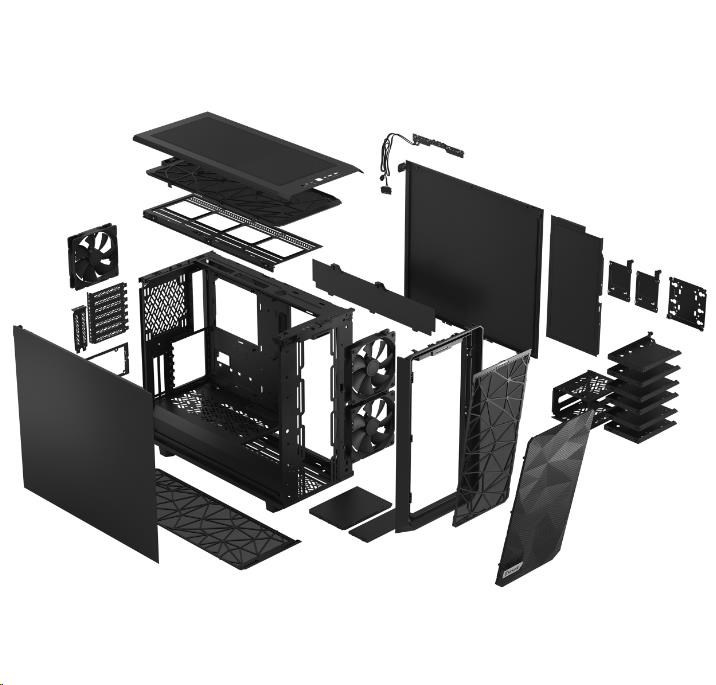 FRACTAL DESIGN skříň Meshify 2 Black Solid, USB 3.1 Type-C, 2x USB 3.0, bez zdroje, E-ATX