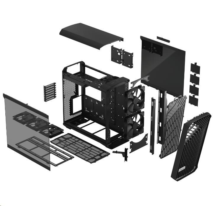 | Bottom fan | 3x 120/140 mm or 2x 180 mm (3x Dynamic GP-14 PWM included in standard version, 3x Prisma AL-14 PWM included in RGB version) |