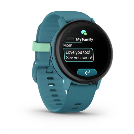 Aplikaci Garmin Jr. můžete používat k zasílání textových zpráv dětem do hodinek Bounce 2. Děti si mohou vytvářet vlastní zprávy a odpovídat kontaktům schváleným rodiči nebo reagovat na zprávy v rodinné skupině.