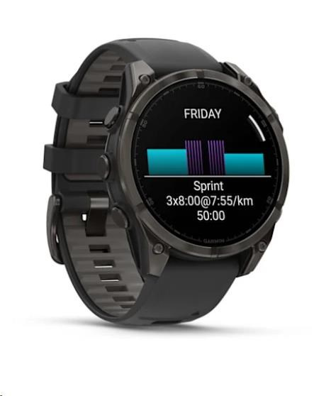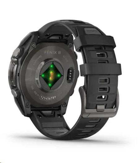 Garmin fenix® 8 – 47 mm, AMOLED, Sapphire, Carbon grey DLC titanium s Black/Gray silikonovým řemínkem, EU