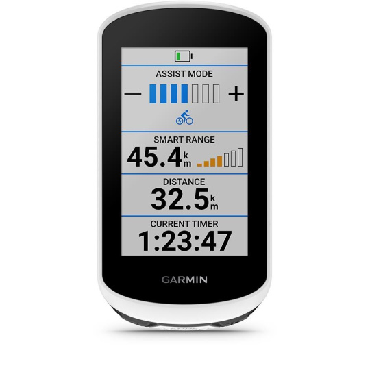 Pokud máte elektrokolo kompatibilní s technologií Shimano Steps nebo ANT+®, můžete na speciální stavové obrazovce pro elektrokola sledovat výdrž baterie a další datová pole. Můžete využít dokonce chytré plánování tras a upozornění na dojezdovou vzdálenost podle stavu baterie, využívání podpory a naplánované tratě.