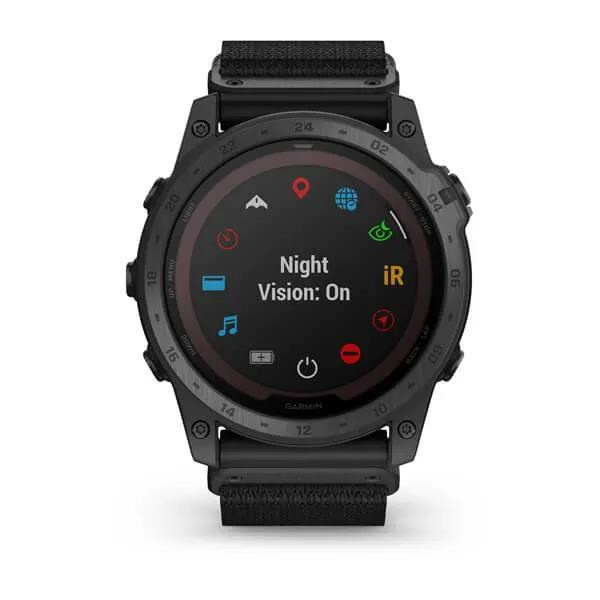 Taktické GPS hodinky s 1,4" displejem krytým solárním safírovým sklíčkem, titanovou lunetou s DLC úpravou, tělem z tvrzeného polymeru a nylonovým řemínkem.Voucher na mapu Topo Czech PRO v balení.