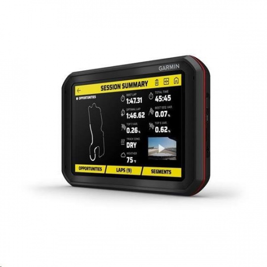 Navigace pro závodní jezdce, databáze závodních okruhů včetně Brna a Mostu, velký 6.95" displej, součástí balení je bezdrátová kamera.