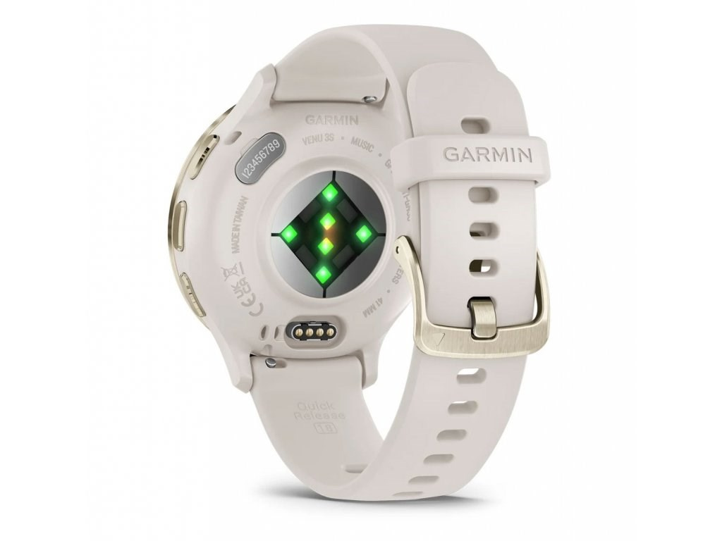 Garmin Venu® 3S, Nerezová luneta Soft Gold, pouzdro Ivory, silikonový řemínek