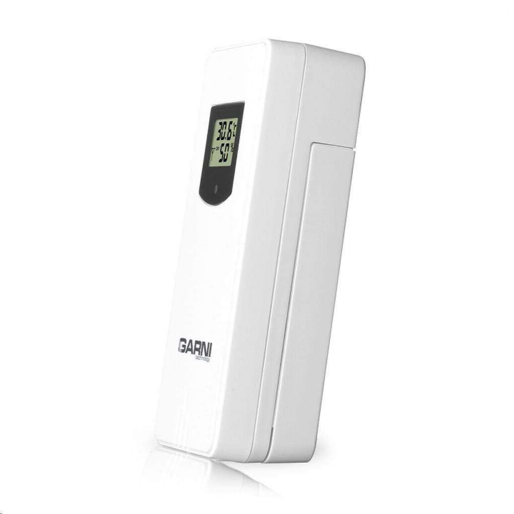 Bezdrátové čidlo pro měření teploty a relativní vlhkosti, určeno pro meteorologické stanice GARNI 439 Line, GARNI 545 Line vlhkosti odolné, krytí IPX4 (odolné proti stříkající vodě) displej o rozměrech 19 x 11 mm velikost číslic na displeji: teplota a relativní vlhkost 4 mm měření teploty a relativní vlhkosti 3 kanály maximální RF výkon 10 dBm (10 mW) možnost postavení a zavěšení barva bílá.