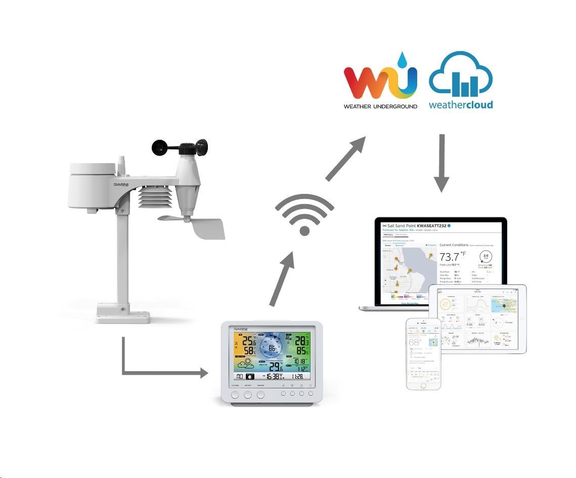 Wi-Fi meteorologická stanice s integrovaným bezdrátovým čidlem 5 v 1 model GARNI 975 je vybavena mnoha
