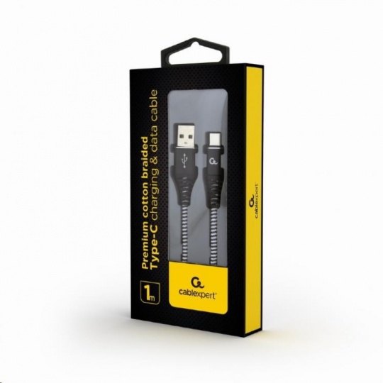 GEMBIRD Kabel USB 2.0 AM na Type-C kabel (AM/CM), 1m, opletený, černo-bílý, blister, PREMIUM QUALITY