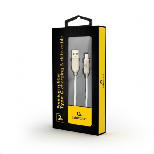 GEMBIRD Kabel USB-A na USB-C kabel (AM/CM), 2m, pogumovaný, bílý, blister