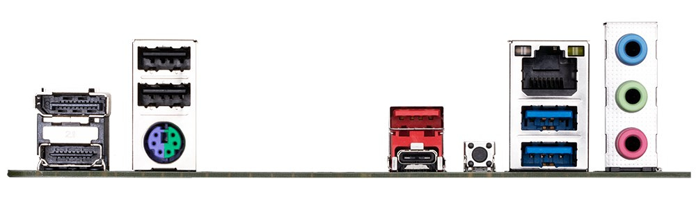 1 x PS/2 keyboard/mouse port 1 x USB Type-C® port, with USB 3.2 Gen 1 support 1 x USB 3.2 Gen 2 Type-A port (red) 2 x USB 3.2 Gen 1 ports 2 x USB 2.0/1.1 ports 1 x HDMI port 1 x DisplayPort 1 x Q-Flash Plus button 1 x RJ-45 port 3 x audio jacks