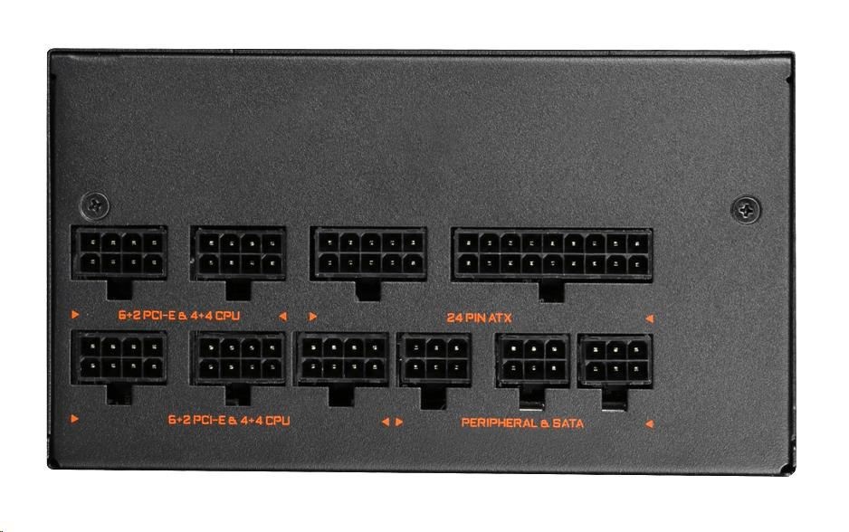 | Connectors | ATX/MB 20+4 Pin x 1 : 610mm*1 CPU/EPS 4+4 Pin x 2 : 600mm*2 PCI-e 6+2 Pin x 4 : 600mm+150mm*2 SATA x 8 : 600mm+150mm+150mm+150mm*2 : 4 Pin Peripheral x 3 + 4-Pin floppy x 1 : 500mm+120mm+120mm+150mm *1 |