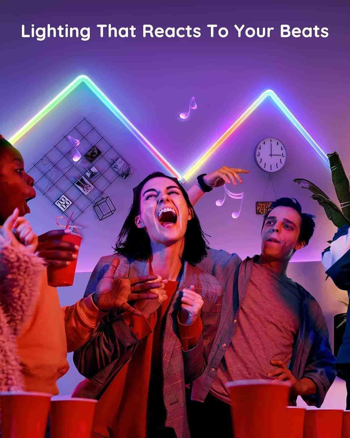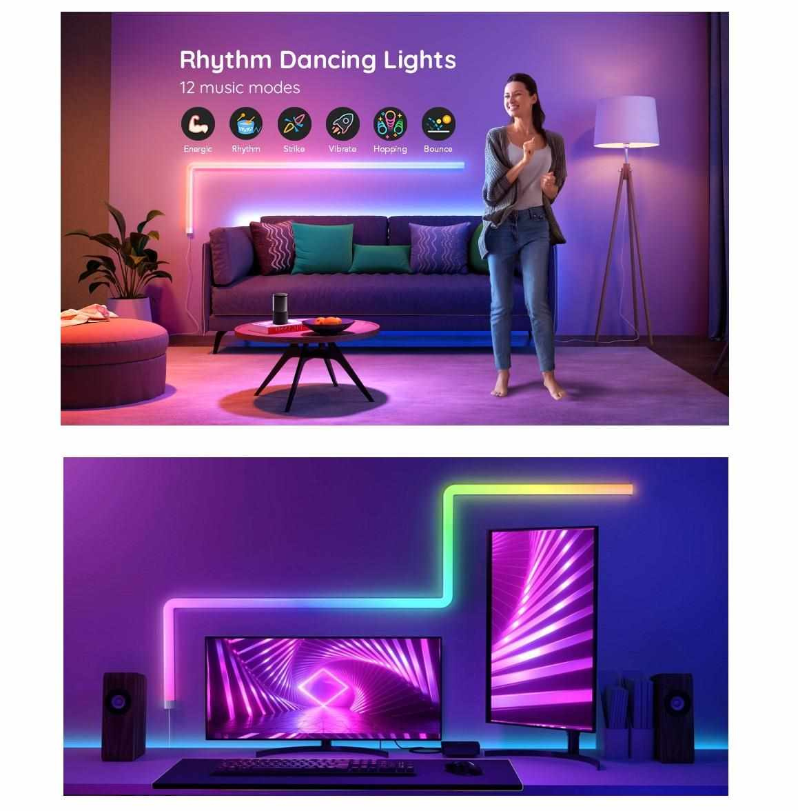 Na výběr je ze šesti režimů pro nastavení rytmického zvuku. Světelné panely se hladce synchronizují s vaší hudbou nebo atmosférickými zvuky při sledování filmů, hraní her a poslouchaní hudby.