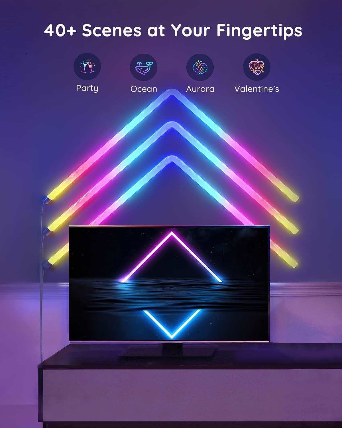 Ti, kteří mají rádi více barev, si zamilují funkci segmentového ovládání barev, které umožňuje technologie RGBIC. Přizpůsobte si barvu každé sekce 3D panelu podle sebe a vytvořte tak unikátní osvětlení, které bude přesně podle vašich představ, vkusu a nálady. Každý panel má 3 části pro zobrazení barvy a efektů, které mohou vytvořit plastický 3D obraz.