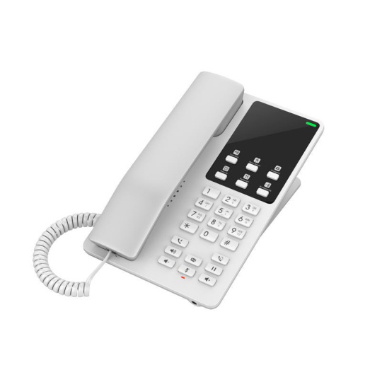 Grandstream GHP620W patří do řady hotelových telefonů. Jde o snadno použitelný IP telefony do jakýkoliv hotelového pokoje, lze ho naprogramovat a přizpůsobit podle potřeb hotelu a jeho hostů. Mezi hlavní vlastnosti patří; jeden HD reproduktor na sluchátku, 2 SIP účty/linky, 10 rychlých voleb, 6 programovatelných tlačítek, 3-cestné audiokonference, dual-band Wi-Fi. Pak je to full band hlasový kodek Opus a pokročilý jitter-resilience algoritmus, který toleruje až 30% ztráty paketů bez dopadu na kvalitu hlasu.