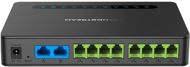 IP brána disponuje osmi FXS porty, dvěma SIP profily, duálním gigabitovým portem a integrovaným NAT routerem. IP brána nabízí pokročilé telefonní funkce jako jsou přesměrování hovorů, jejich přidržení, nebo upozornění na příchozí zprávy. Dále můžete využít podporu třícestné audio konference pro každý FXS port, nebo službu faxování tzv. fax-over-ip ( protokol T.38). Jistě Vás potěší i možnost výběru z široké škály formátu ID volajících. Výjimečnou kvalitu hlasu zajistí podpora HD kodeku a podpora Qos (Quality of Service). Ten řídí datový tok s ohledem na druh přenášených dat a rozdělení kapacity sítě pro jednotlivé uživatele dle nastavených priorit. Díky tomu by nemělo docházet k zahlcená sítě a tím pádem ke snížení kvality hlasových služeb. Lepší bezpečnost, pro ochranu hovorů a účtů, Vám zajistí podpora šifrovací technologie AES s bezpečnostním certifikátem pro konkrétní jednotku. Pro lepší správu zařízení můžete využít automatický provisioning v rámci TR-069, nebo podporu XML confing files. Pakliže zařízení použijete ve spojení s řadou UCM značky Grandstream, usnadní Vám práci Zero Configuration provisioning.