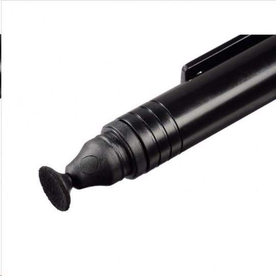 - pro vysoce efektivní a šetrné čištění všech optických ploch, speciálně vyvinuto pro objektivy a filtry - dlouhá životnost, protože jde o suché čištění, což znamená, že produkt neobsahuje žádnou kapalinu, která by mohla vyschnout - odstraňuje prach, mastná místa a jiné šmouhy - součástí je štětec pro prvotní odstranění větších nečistot - vytvarováno pro pohodlné držení - klip pro připevnění, např. ke kapse na košili/tričku - zahnutá čisticí plocha ze speciálního sametu - průměr čistící plochy: 13 mm - délka pera: 12,5 cm - materiál pera: plast - materiál čistící plochy: speciální samet - barva: černá Návod k použití: 1. Pomocí červeného posuvného tlačítka vysuňte štětec. Pomocí štětce odstraňte větší částečky nečistot. 2. Sundejte ochranný kryt na opačném konci pera. Pomocí sametové čisticí plochy, krátkými krouživými pohyby, odstraňte nečistoty z optického povrchu. Po skončení čištění opět nasaďte ochranný kryt a jedenkrát otočte, abyste aktivovali čisticí vlákna. 3. Pro hůře odstranitelné znečištění dýchnete na optickou plochu a čistící proces opakujte. Upozornění: Nevhodné pro čištění zrcadel fotoaparátů. Tento produkt je vhodný pouze k čištění malých optických povrchů..