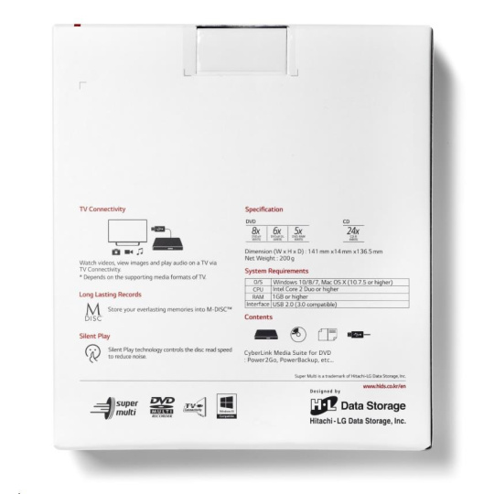 HITACHI LG - externí mechanika DVD-W/CD-RW/DVD±R/±RW/RAM GP57EW40, Slim, White, box+SW