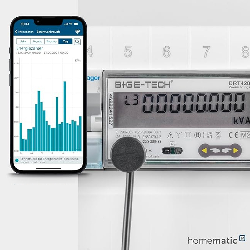 V kombinaci s aplikací Homematic IP zařízení poskytuje komplexní přehled o energetických hodnotách a umožňuje vždy sledovat aktuální spotřebu energie nebo výkony. Prostřednictvím získávání údajů z měření lze spotřebu vizualizovat i zpětně za delší časové období.