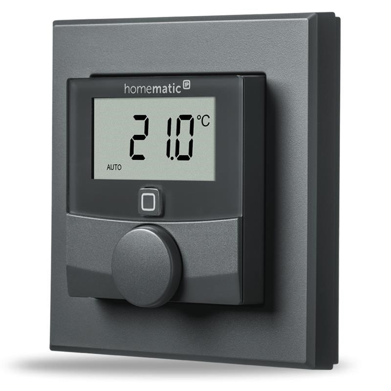 Jedním z takových zařízení je i bezdrátový Nástěnný termostat se senzorem vlhkosti v antracitové barvě (HmIP-WTH-A) z řady Homematic IP s podsvíceným LED displejem o velikosti 1,74" pro zobrazení teploty a vlhkosti představující inteligentní způsob regulace vytápění a úspory energií.