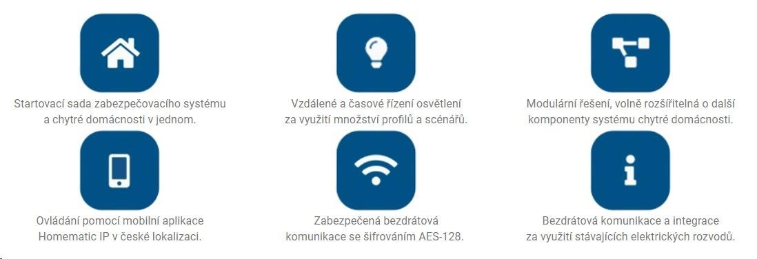 - Možnost rozšíření systému o další výrobky Homematic IP určené k zabezpečení, automatizaci a řízení vytápění.